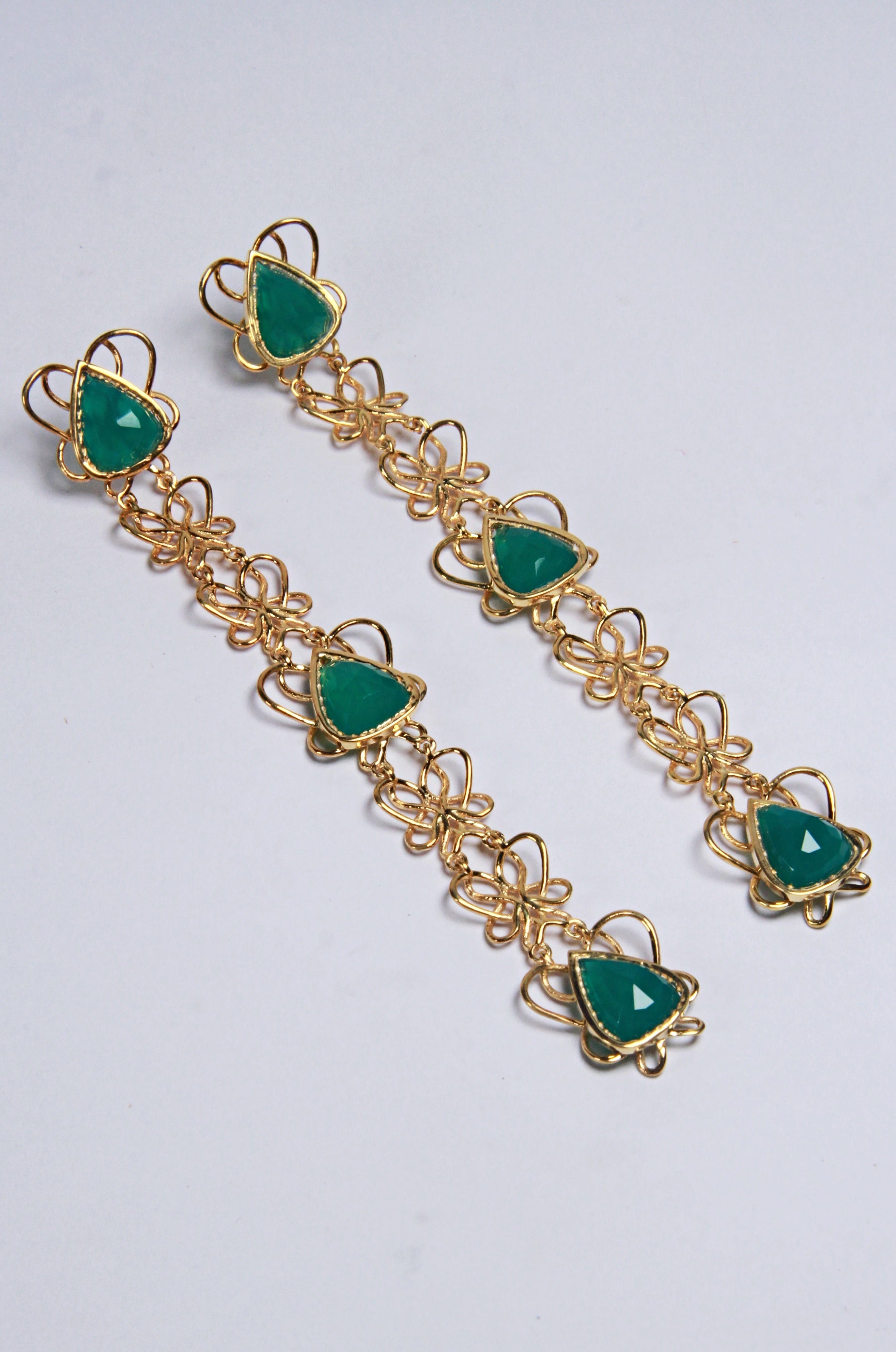 Inspired by the glorious peu or the endless knot of the eight auspicious signs of buddhism. This beautiful earring set is handcrafted in sterling silver and studded with natural stones.